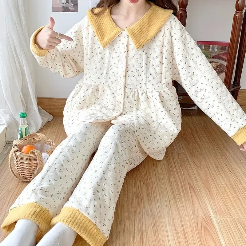 Домашняя одежда для беременных, одежда для сна для грудного вскармливания, хлопковая одежда для женщин, новинка 2023, зимняя и осенняя теплая одежда для отдыха, пижамы