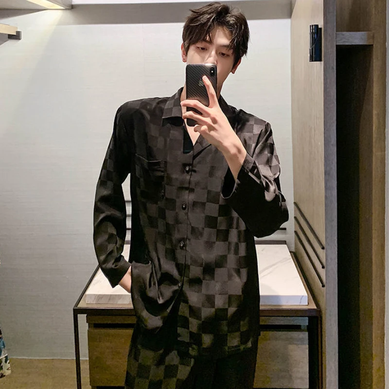 Домашняя одежда, имитация рукавов, пижама, осень, лето, ледяной костюм, Весна, шелк, мужская Тонкая шелковая и длинная Пижама