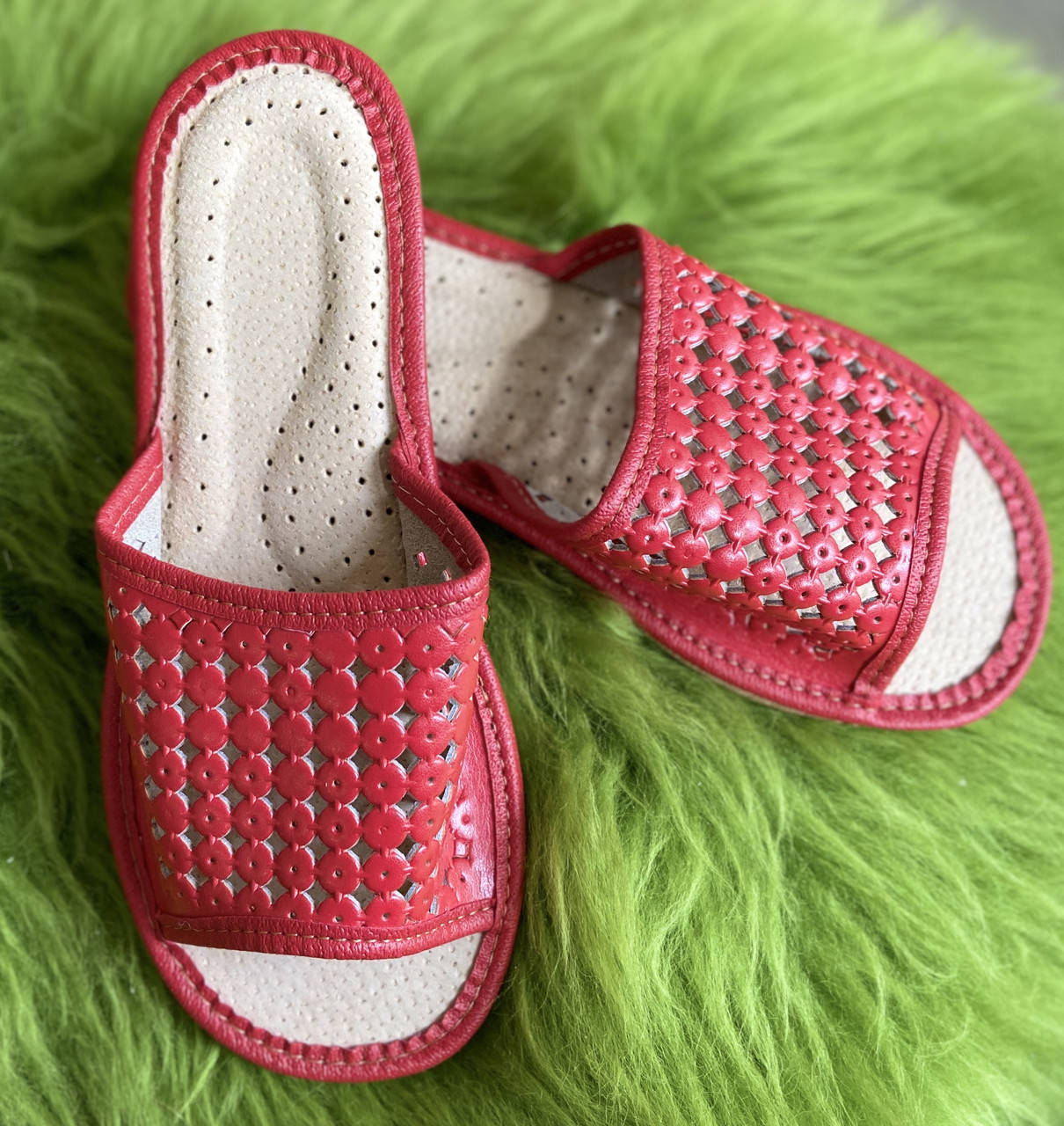 Домашні шкіряні жіночі капці, 41 розмір, Красный