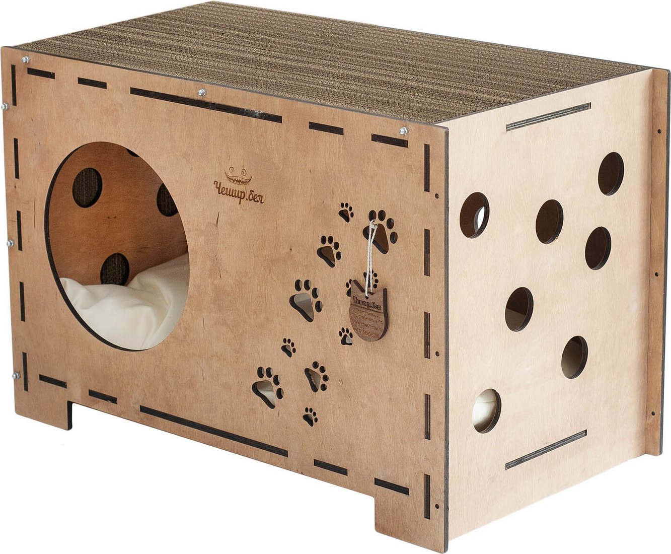 Домик Чешир Сундук с верхней и боковой когтеточкой (бежевый)