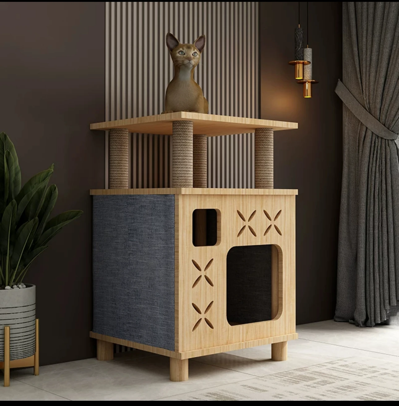 Домик для кошки из цельной древесины, универсальная Всесезонная прикроватная тумба для кошек с закрытым домиком, для людей и кошек, стулья