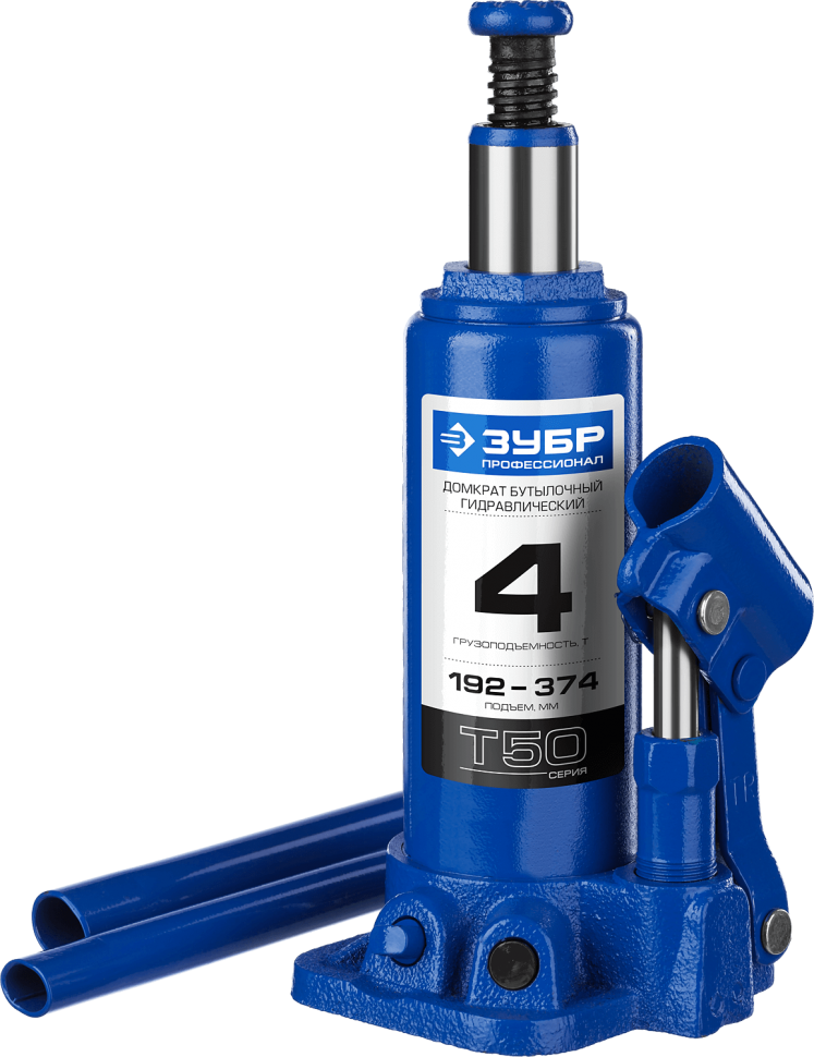 Домкрат ЗУБР Профессионал Т50, бутылочный гидравлический, 4 т, 19.2 см-37.4 см (43060-4_z01), Т50