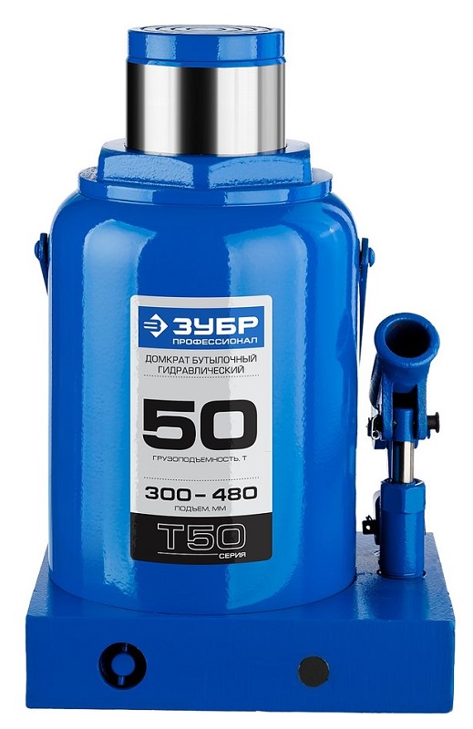 Домкрат ЗУБР Профессионал Т50, бутылочный гидравлический, 50 т, 30 см-48 см (43060-50_z01), Т50