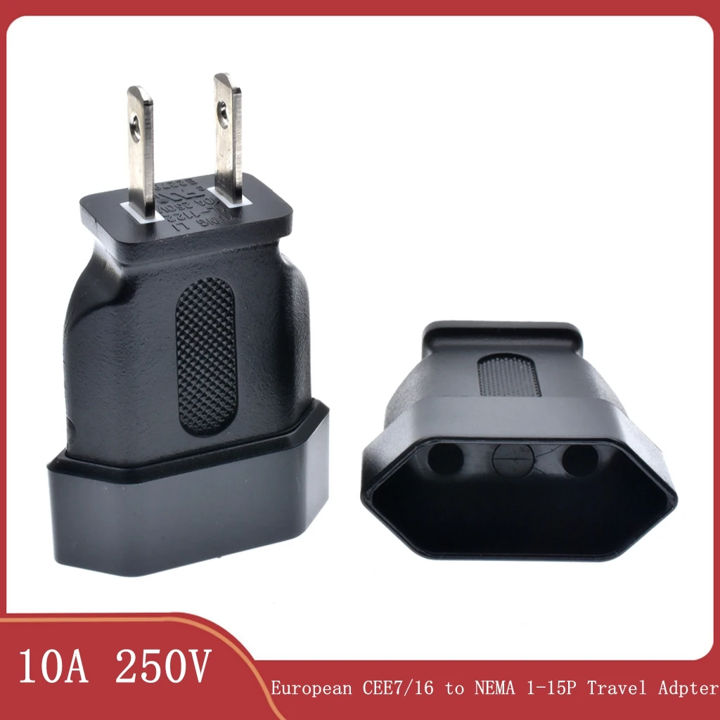 Дорожный адаптер US с 2 плоскими контактами типа А, адаптер питания переменного тока, европейская розетка CEE7/16 к NEMA 1-15P 250 в 10 А