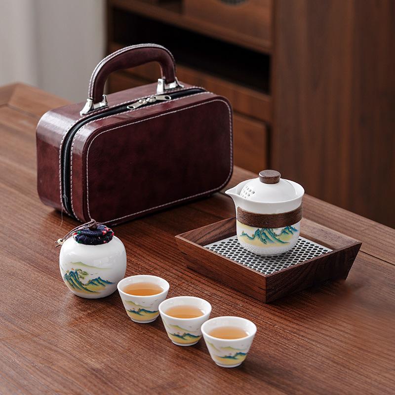 Дорожный набор для кунг-фу чая для улицы, белый фарфор, портативная экспресс-чашка, набор чайных чашек, простой бытовой бизнес-подарок