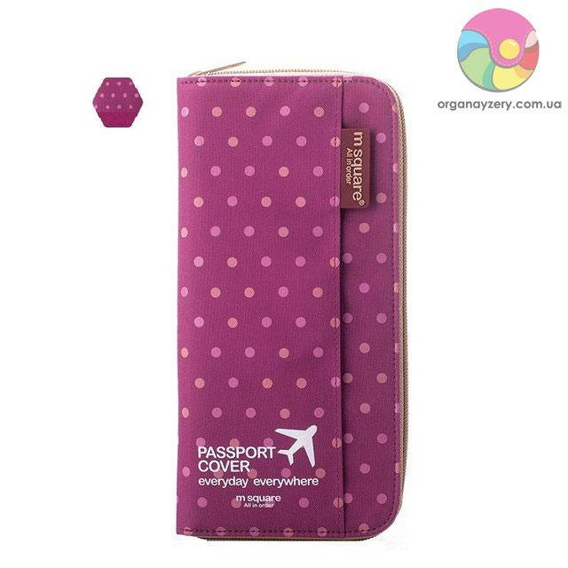 Модный и удобный органайзер для документов является обязательной вещью в арсенале каждого путешественника. Эта модели изготовлена из полиэстера и имеет размеры 23х12х1,5 см. Изделие имеет красивый малиновый цвет и принт розовый горошек – весьма удачный выбор для романтичных девушек.
