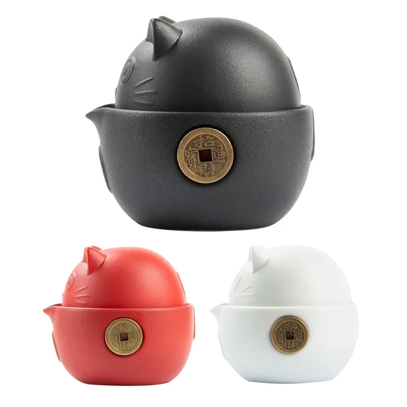 Дорожный портативный керамический чайный набор Cut Cat Series, чайный набор с чашкой, дорожный мешок для офиса, дома, путешествий, подарочная посу...