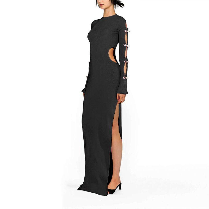 Доступная роскошь Платье с вырезами на рукавах Вечернее платье Бант Black XS