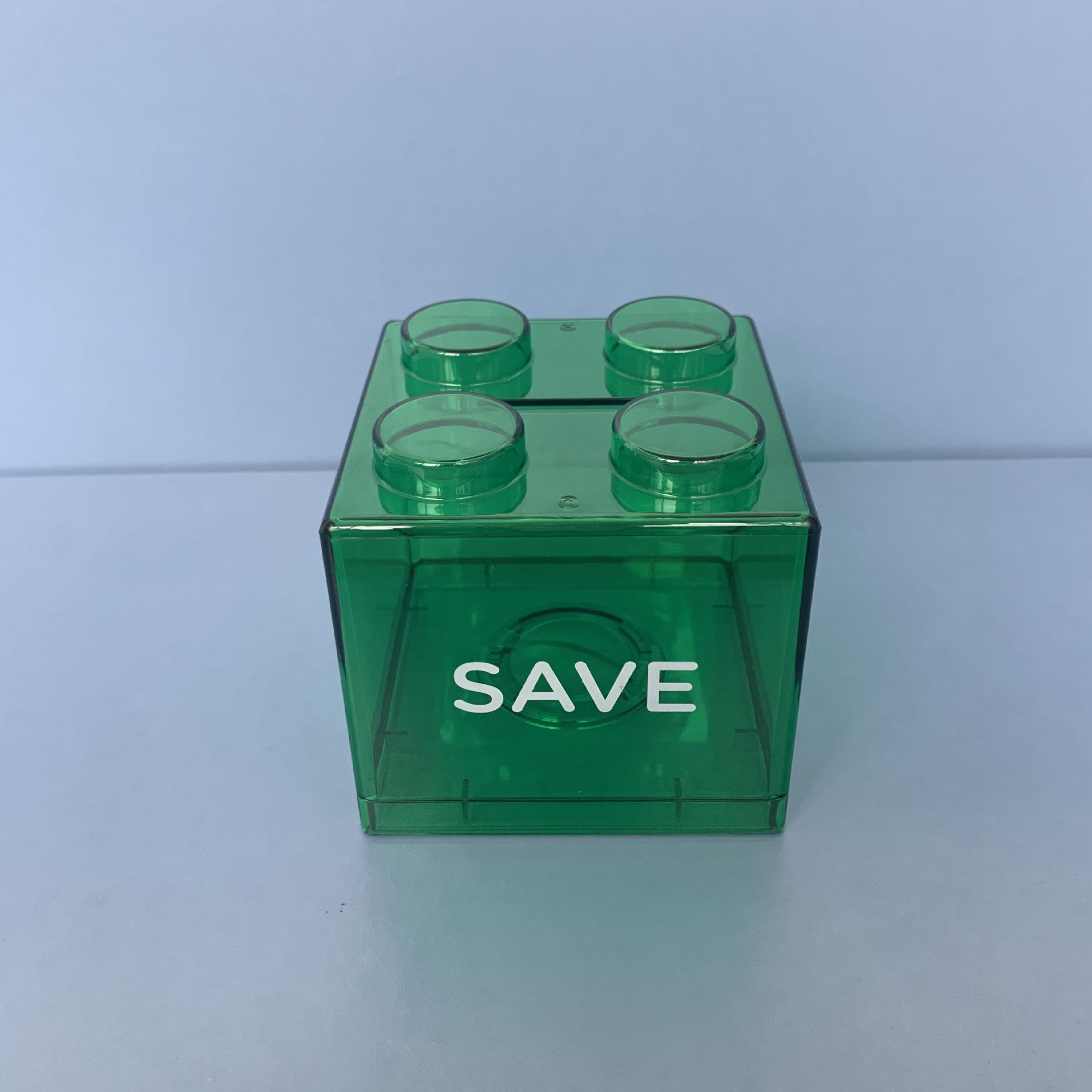 Доступный: Красная, Желтая, Синяя Копилка в виде строительного блока - Английская версия, Прозрачная копилка для монет. зелёный