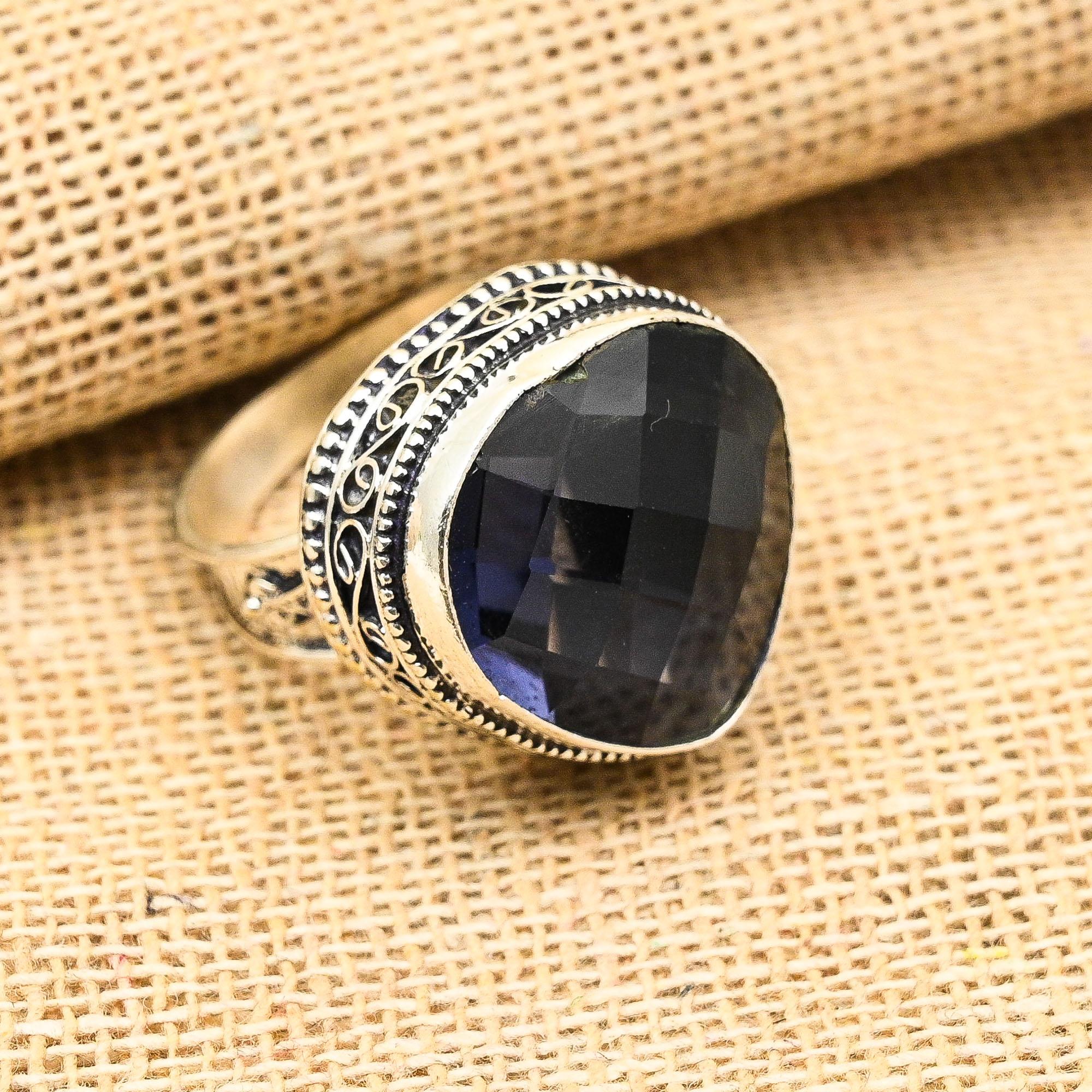 Драгоценный камень иолит в форме сердца, стерлинговое серебро 925 пробы, замечательное ювелирное кольцо ручной работы на День Благодарения 10 синий