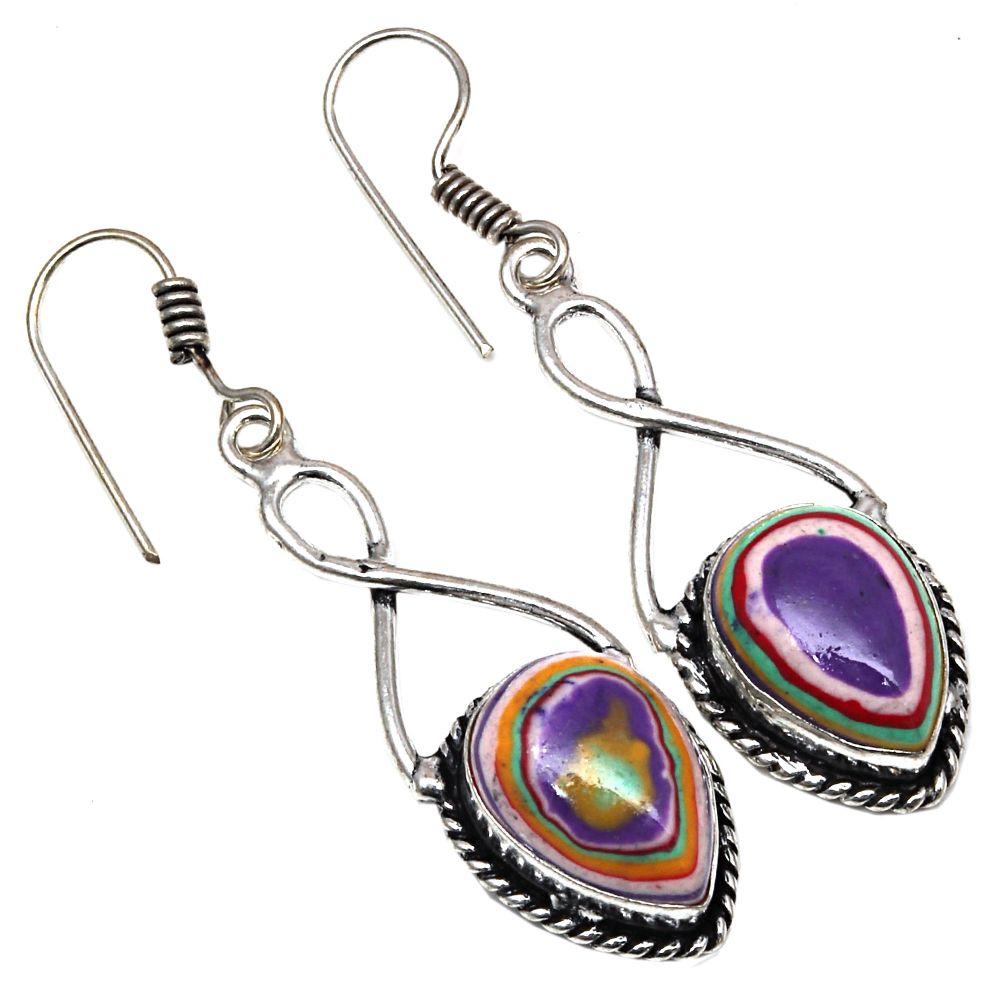 Драгоценный камень радужной калсилики в подарок для нее серебряные серьги 1,5