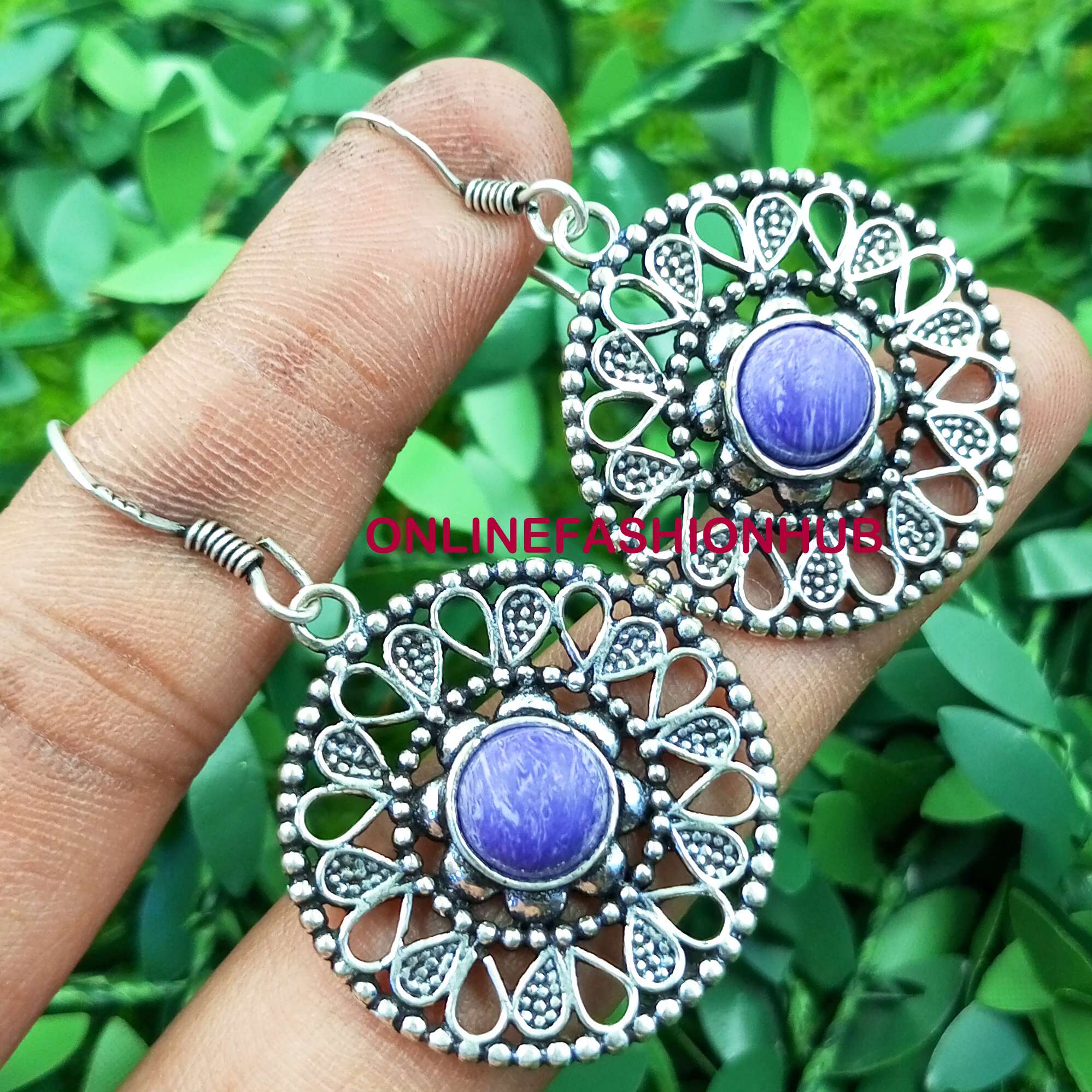 Драгоценный камень чароит, стерлинговое серебро 925 пробы, покрытые серебром серьги-крючки для девочек, ювелирные изделия NST-CSE10