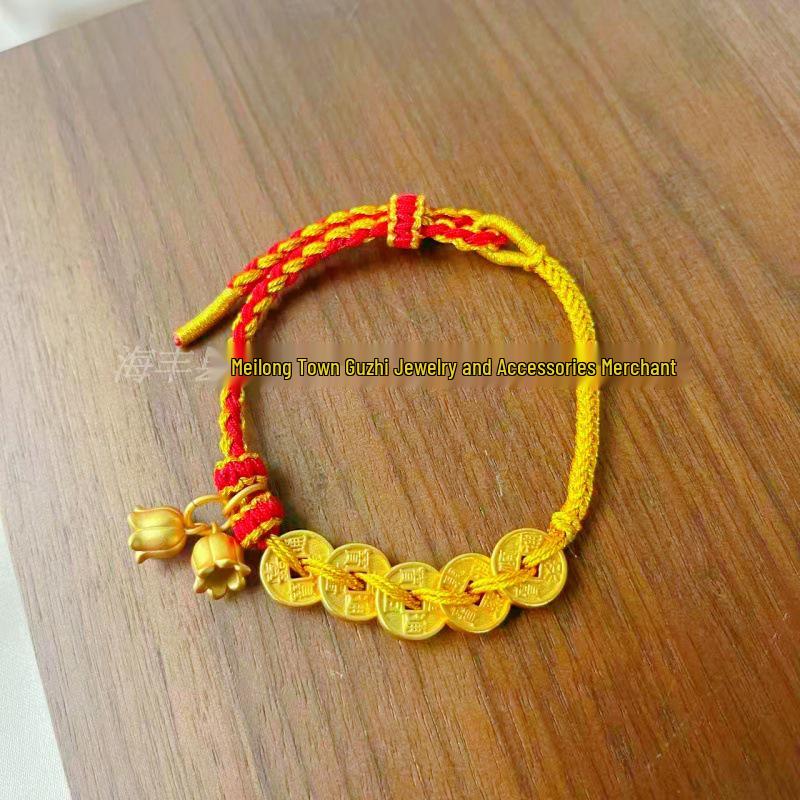 Древний Золотой Песок Монета Пять Императоров Колокольчик Браслет: Подарок из красной веревки ручной работы для девушки.