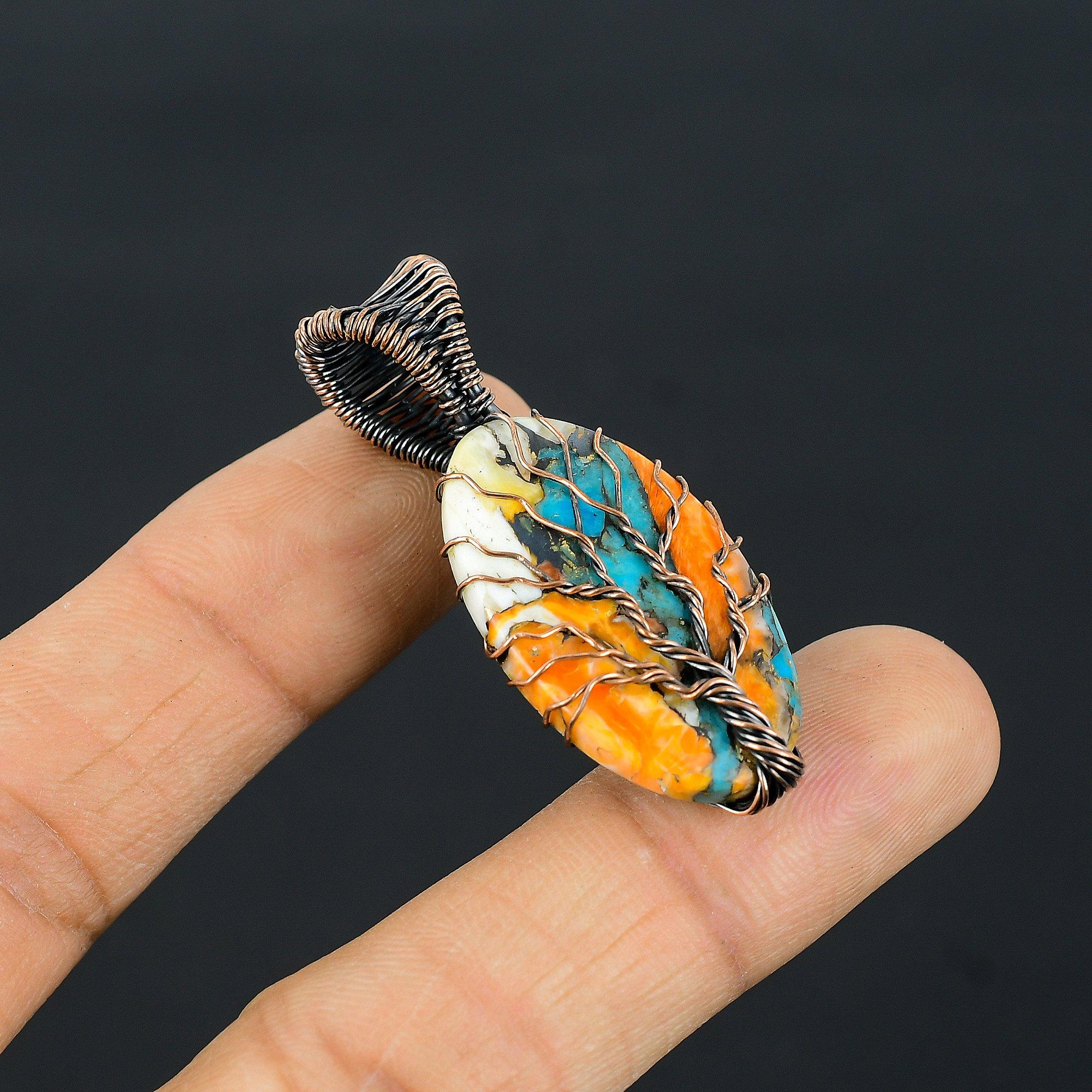 Древо Жизни Мульти Медь Колючая Устрица Драгоценный Камень Медная Проволока Обертывание Кулон Ручной Работы Ювелирные Изделия Подарок Для Любви 1.96 Inches оранжевый