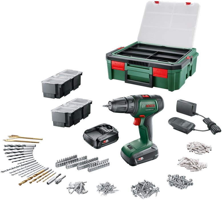 Дрель-шуруповерт Bosch UniversalDrill 18V 06039d4003 (с 2-мя АКБ 1.5 Ач, набор оснастки, кейс)