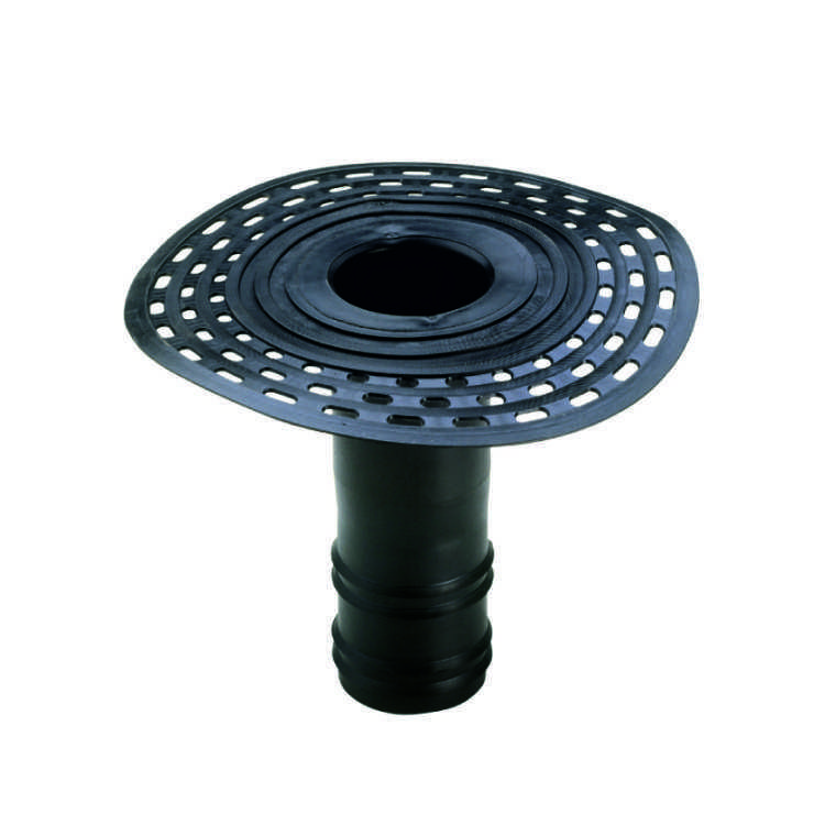 Фланец воронки имеет перфорацию, которая улучшает адгезию с полимер-битумной мембраной.