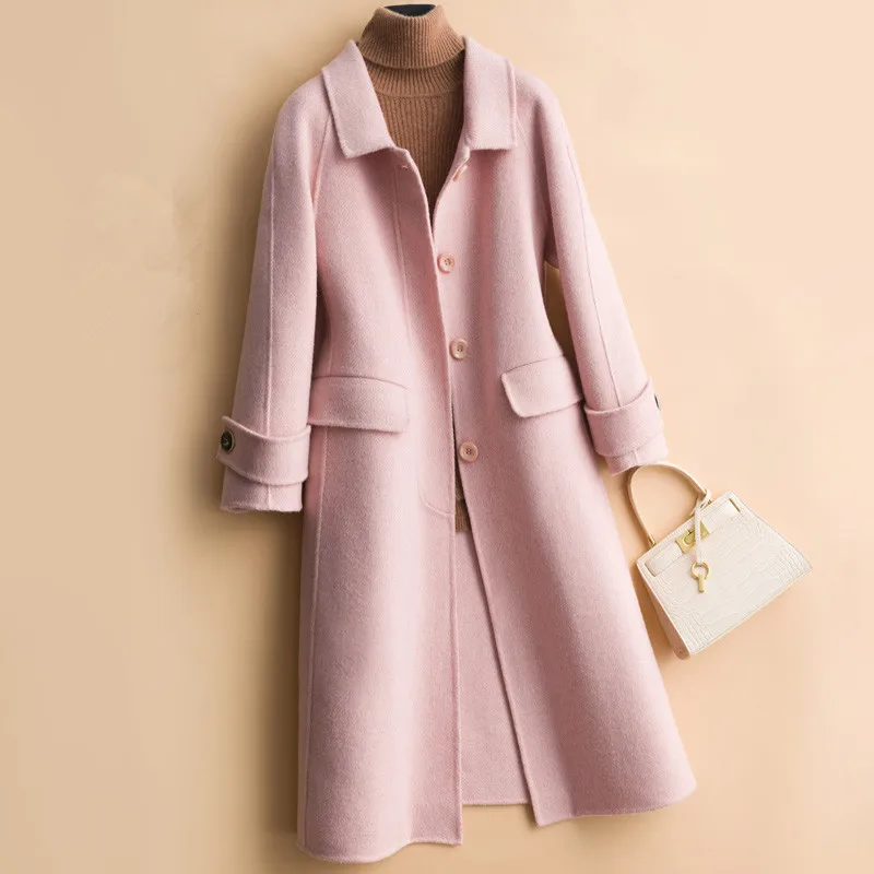 Женское двухстороннее шерстяное пальто, элегантное офисное пальто 4 цветов, шерстяное пальто с длинным рукавом для осени и зимы