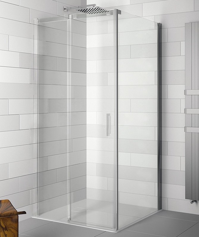 Тип - душевая стенка, Монтаж - в угол (к двум стенам), Материал стенок - закаленное стекло