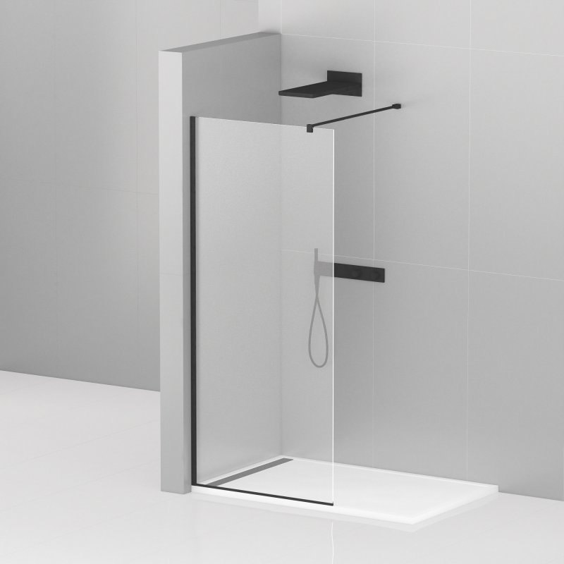 Душевая перегородка Cezares Liberta-L-1-140-120-C-NERO стекло прозрачное, кронштейн 120 см, LIBERTA-L-1-140-120-C-NERO
