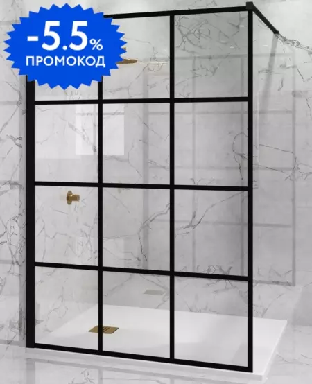 Душевая перегородка «Paini» WalkIN110G 110/195 прозрачная/чёрная универсальная