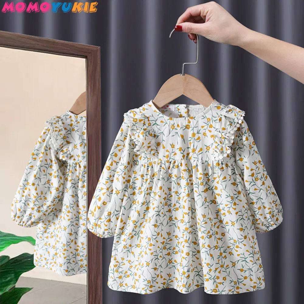 Детское платье с длинным рукавом, большим отложным воротником и цветочным принтом