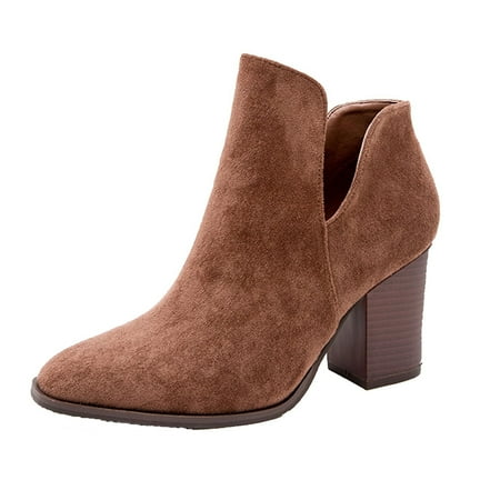 Winter Savings Clearance Deals 2022! Hvyes Women Boots Pointed Shoes Zip Shoes Winter Casual Shoes High Heel Warm Solid Boots