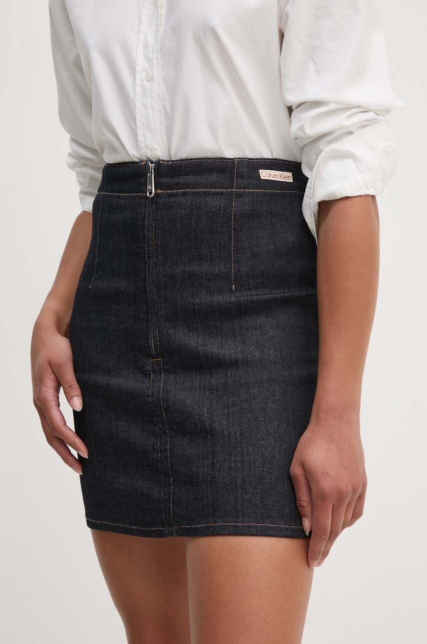 Дънкова пола Calvin Klein Jeans в тъмносиньо къса с кройка тип молив J20J224056, Тъмносин