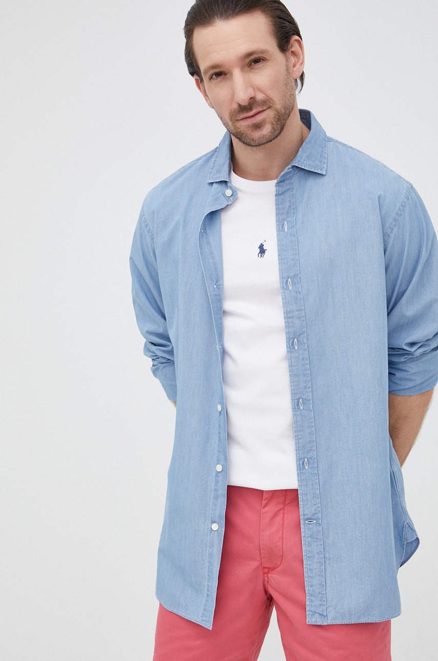 Дънкова риза Polo Ralph Lauren мъжка със стандартна кройка с италианска яка, Син