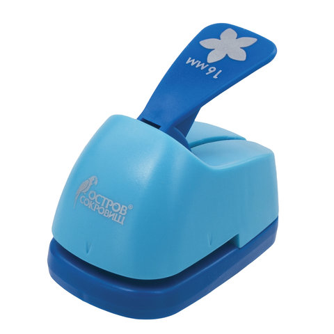 Дырокол, 1 отверстие 16мм, голубой, ОСТРОВ СОКРОВИЩ Цветок (227152), Цветок