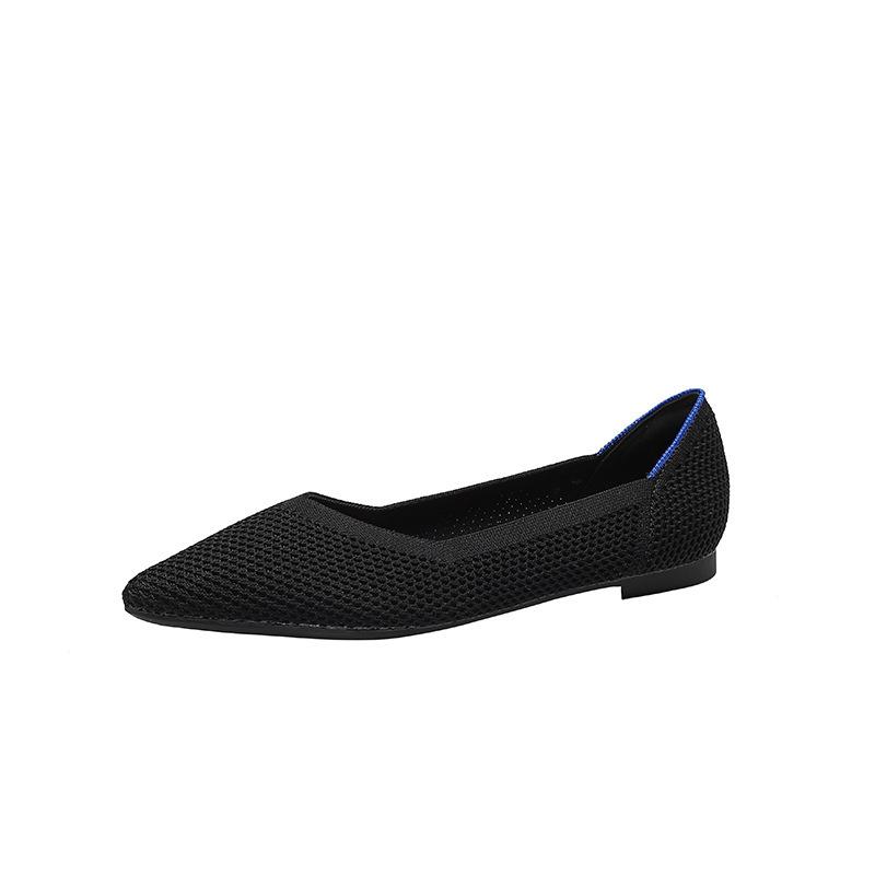 Дышащая мягкая подошва, полая, с острым носком, на плоской подошве, одинарная обувь, вязаная, тканая, женская обувь, с неглубоким вырезом, обувь Doudou 34 чёрный