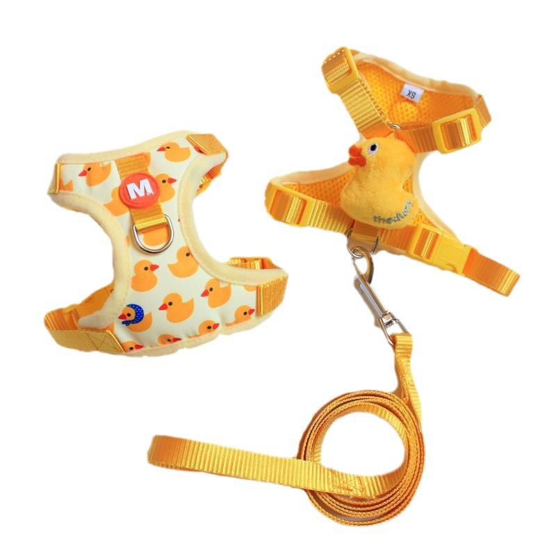 Дышащая сетчатая шлейка для домашних животных, мультяшная маленькая желтая утка, жилет для домашних животных, поводок для маленьких собак, щенков, кошек, регулируемый поводок с пряжкой M