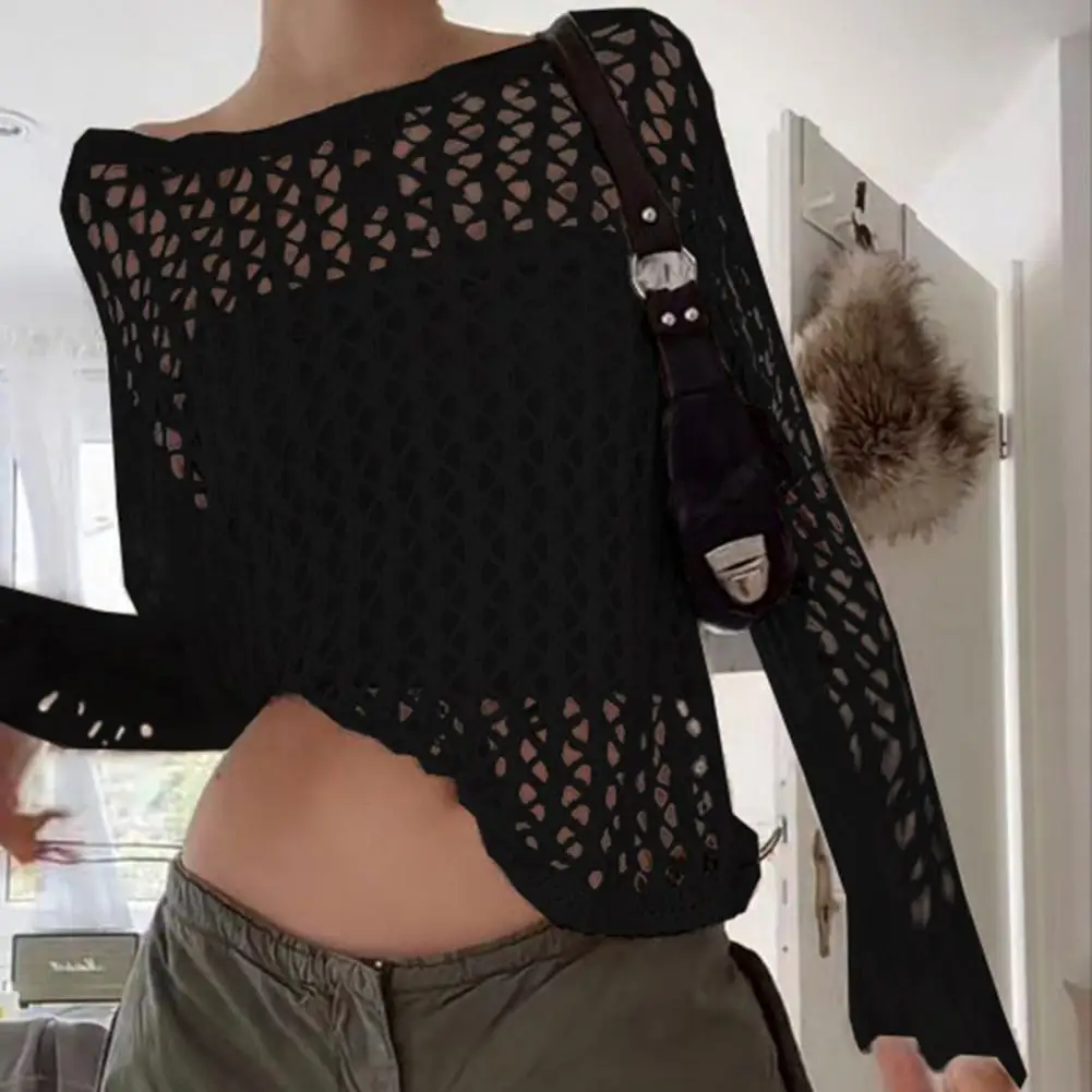 Дышащая шикарная свободная вязаная блузка-накидка с вырезами, трикотажная блузка на ощупь, однотонная женская одежда