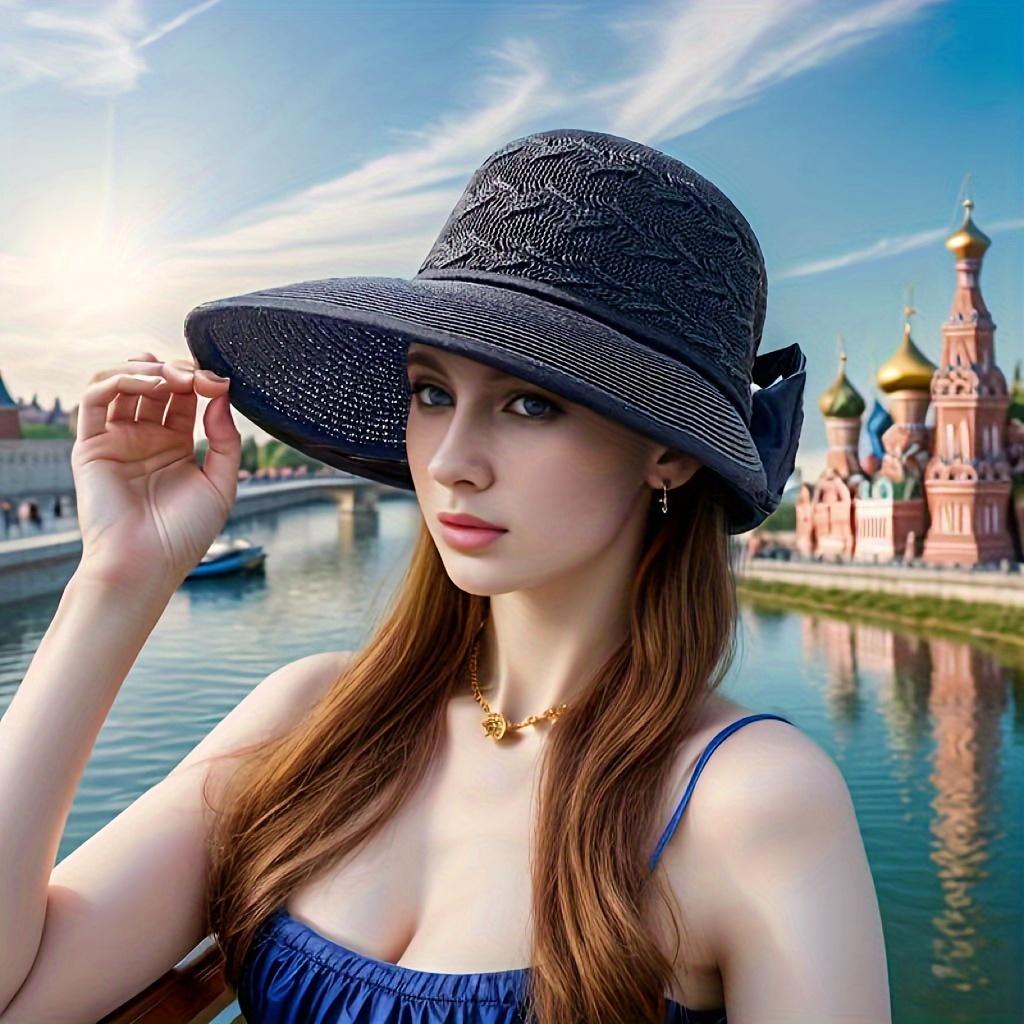 Дышащая широкополая соломенная модная летняя шляпа от солнца, кепка для рыбалки с защитой от ультрафиолета, универсальные пляжные шляпы One Size Fits All чёрный