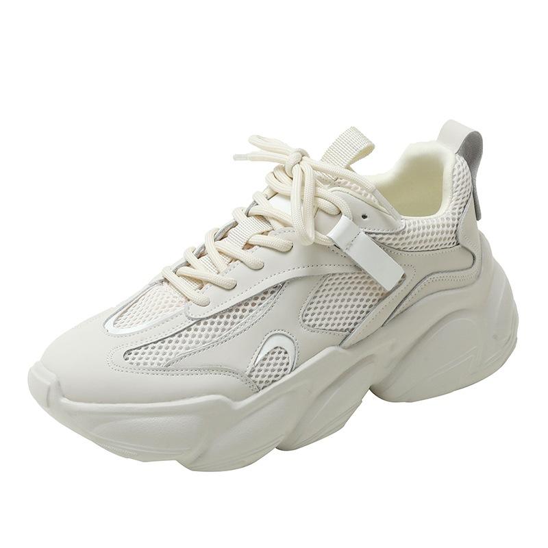 Дышащие громоздкие кроссовки женские летние новые платформы увеличивающие рост повседневные белые туфли Ins модные кроссовки 40 бежевый