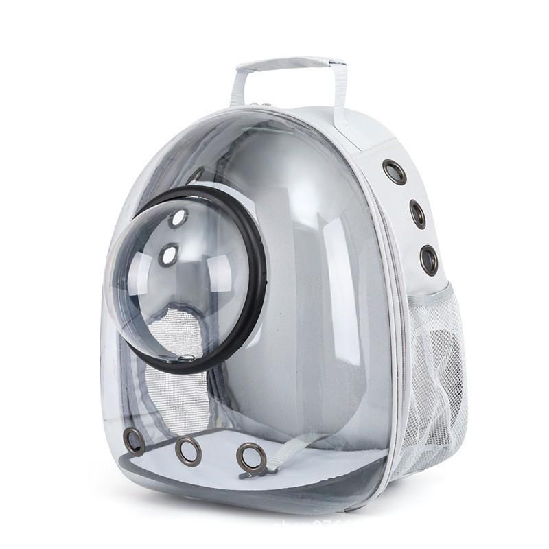 Дышащий прозрачный рюкзак для кошек: Просторная панорамная капсульная конструкция для комфортных прогулок — возможность переноски двумя руками серый
