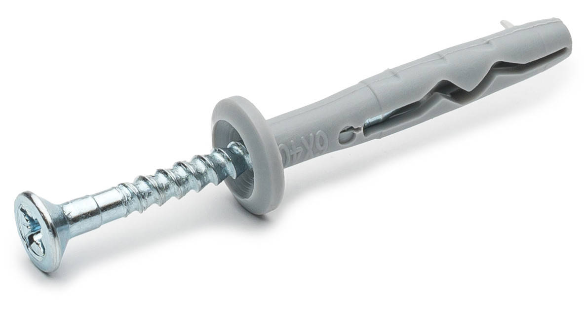 Дюбель производится в двух вариантах - с буртиком потайным, благодаря которому шуруп не выступает за пределы закрепляемого элемента, и грибовидным буртиком - который выступает над закрепляемым элементом и имеет лучшие прижимные свойства.