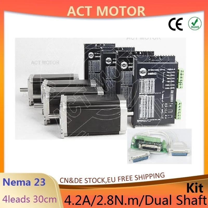 ЕС Бесплатная доставка! ACT 4 шт. Nema23 57BYGH шаговый двигатель 23HS2442B ДВОЙНОЙ ВАЛ 112 унций-дюйм мм А + Драйвер DM542 24-50 в а фрезерование
