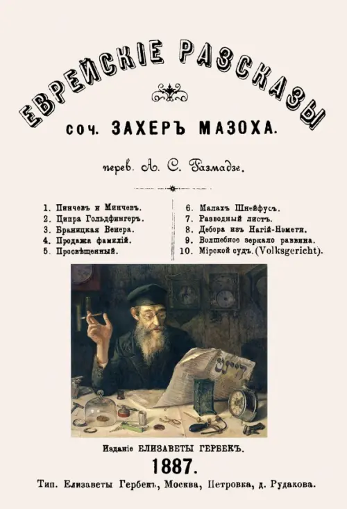 Репринт с издания. Москва, 1887. Леопольд фон Захер-Мазох родился 27 января 1836 года в Лемберге (с 1918 года город называется Львов). Отец его был начальником полиции Королевства Галиции и Лодомерии. В университетах Праги и Граца он в возрасте 19 лет становится доктором права. В 1858 году анонимно опубликовал роман «Одна галицийская история. Год 1846». С того времени Захер-Мазох ежегодно создавал по книге, а то и больше, экспериментируя с самыми разнообразными литературными жанрами. Умер в 1895 г. Содержание: Пинчев и Минчев; Ципра Гольдфингер; Браницкая Венера; Продажа фамилий; Просвещенный; Малах Шлейфус; Разводный лист; Дебора из Нагий-Нэмети; Волшебное зеркало раввина; Мирской суд. (Volksgericht). Тираж 30 экз. выполнен по технологии print-on-demand.