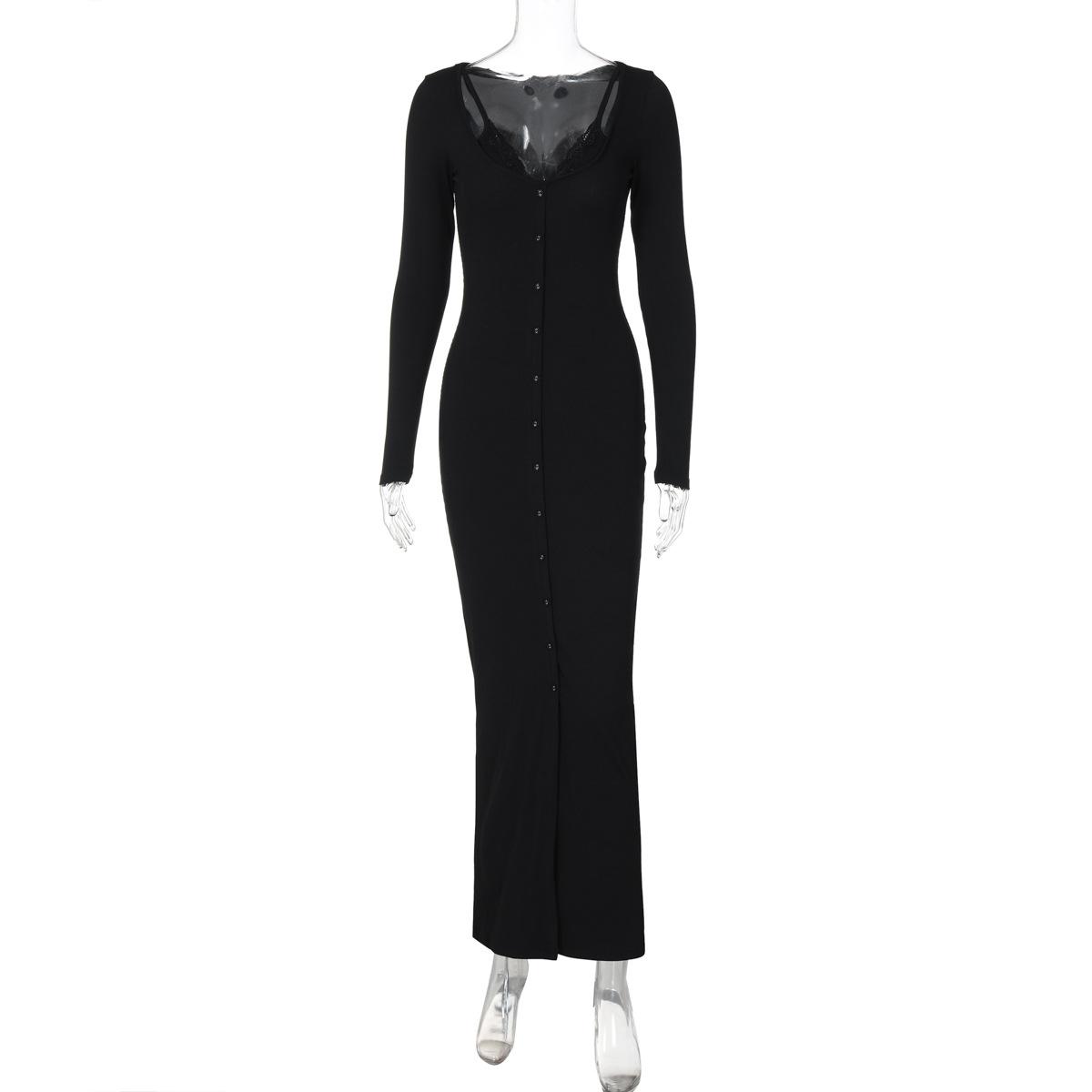 Европа и США Ветер, женская одежда, новинка весны 2025 г., сексуальный Pure Desire Wind, U-образный вырез, бретель через шею, ложные две части, с длинными рукавами L чёрный