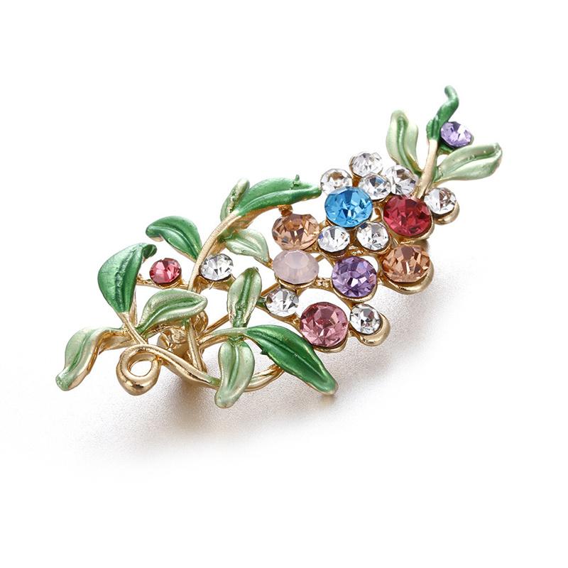 Европа и Соединенные Штаты Америки Цветная хрустальная брошь Темпераментная мода Стразы Листья Цветок Корсаж Брошь Аксессуары