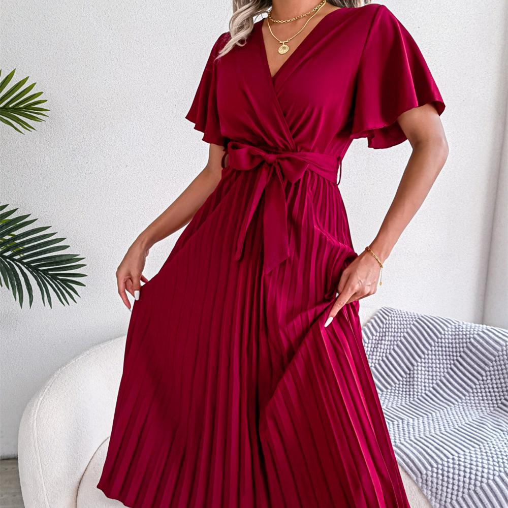 Европейская и американская весенне-летняя длинная юбка с v-образным вырезом, женская одежда, платье
