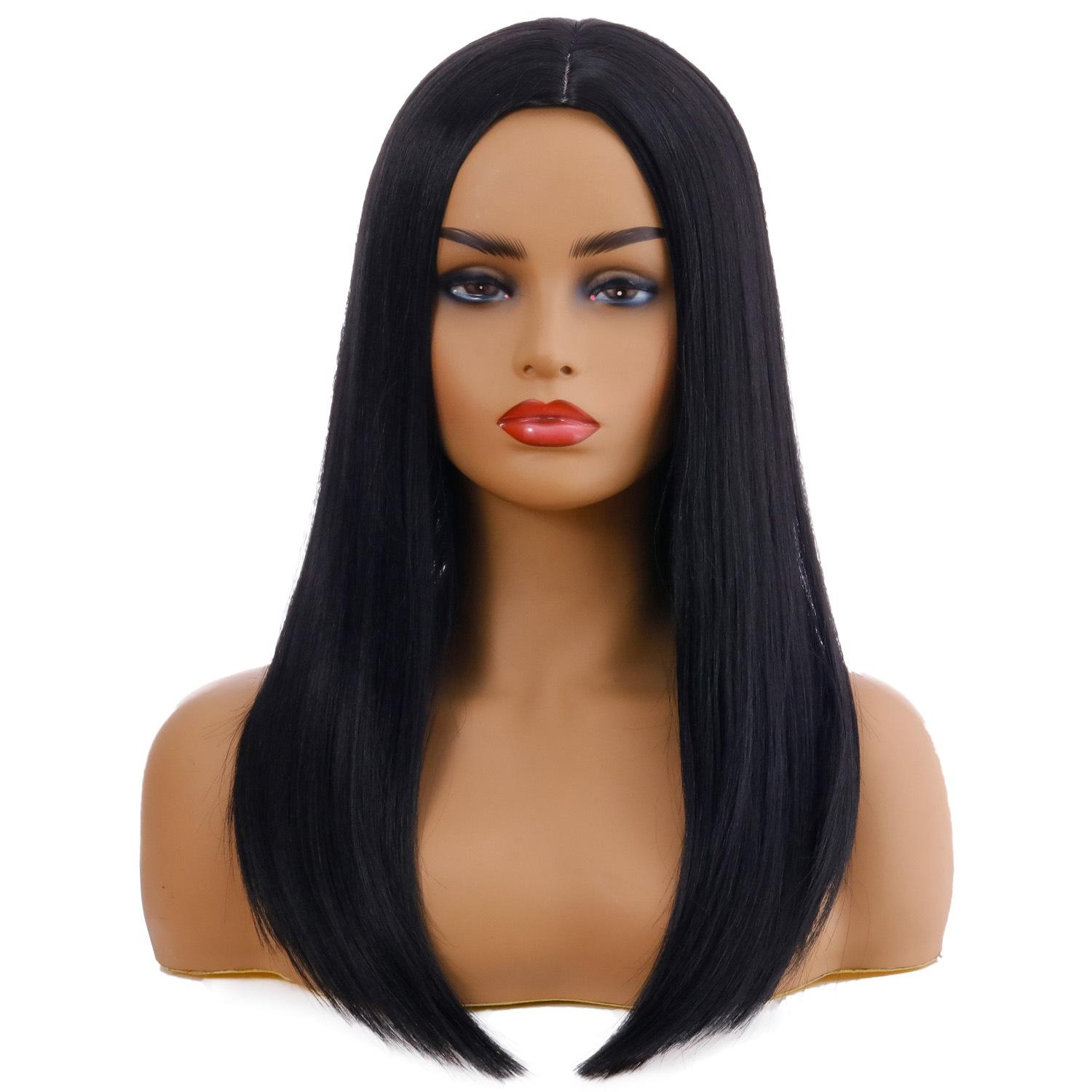 Европейская и американская женская новая мода, средняя часть, черные длинные прямые волосы, европейский и американский парик, покрытие на голову из химического волокна чёрный