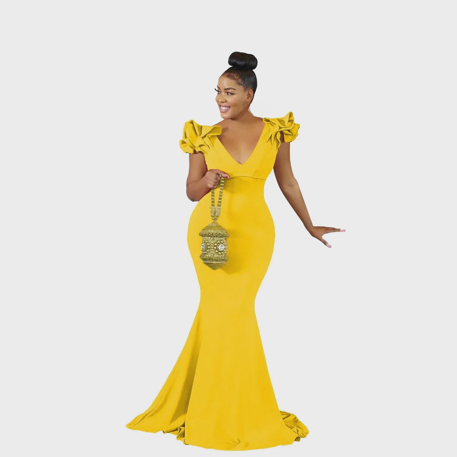 Европейская и американская мода женское однотонное длинное платье без рукавов с V-образным вырезом и цветком на плече