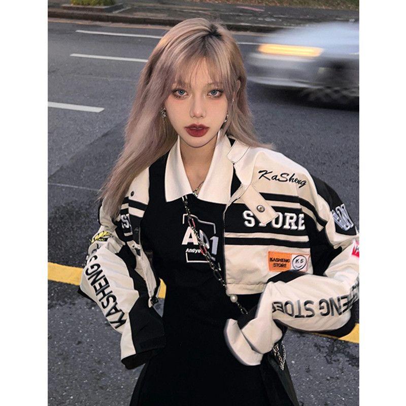Европейская и американская пара Съемная мотоциклетная бейсбольная униформа Верхняя одежда Женская свободная Весенне-осенняя тонкая Американский ретро гоночный костюм Black S