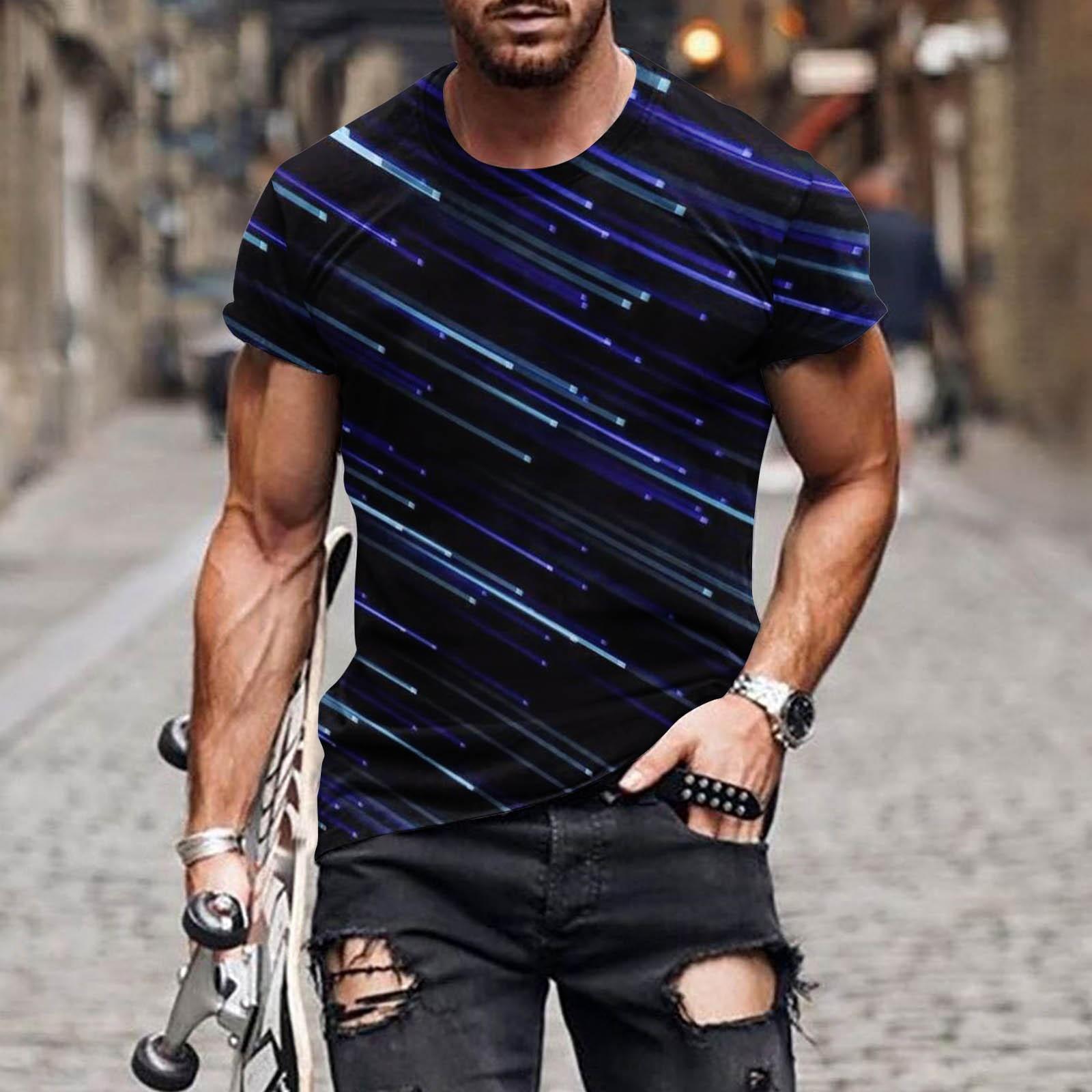 Европейская и американская повседневная футболка с короткими рукавами и круглым вырезом в красочном стиле с принтом XXXXXXL тёмно-синий