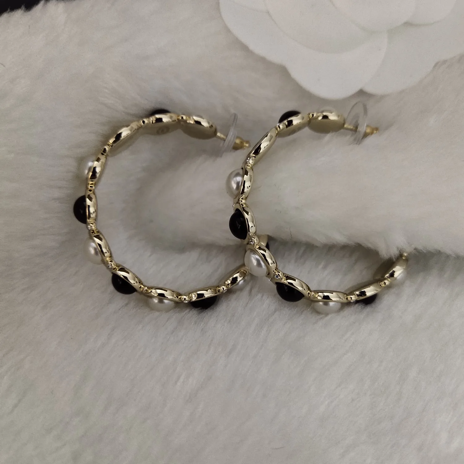 Европейские и американские модные элегантные черно-белые серьги с бусинами