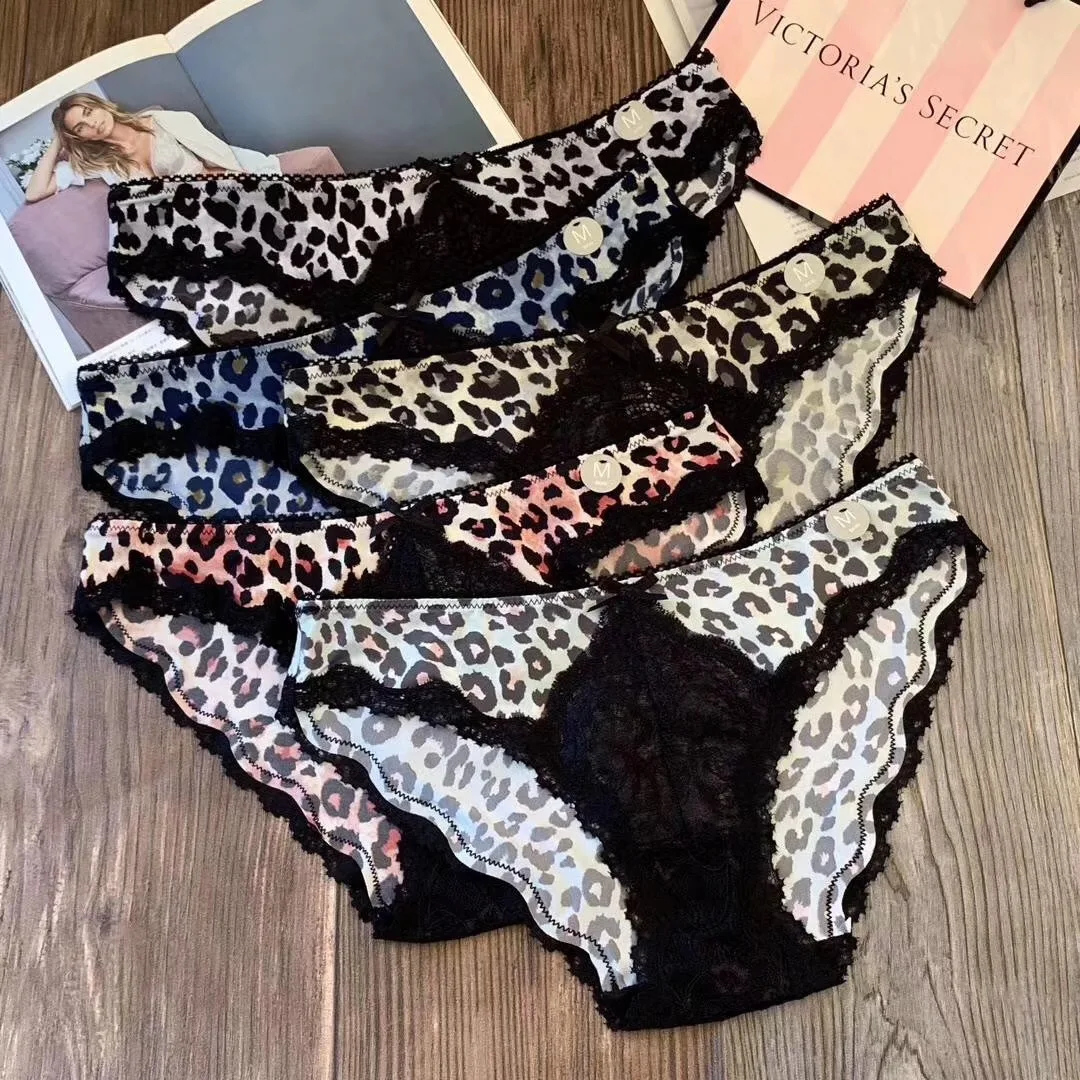 Европейские и американские пикантные трусики с леопардовым принтом из молочного шелка с кружевом прозрачные трусики с низкой талией для де...