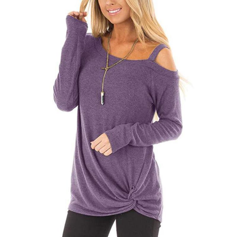 Европейский и американский осенне-зимний однотонный свитер с длинными рукавами и косой строчкой на плечах, женская футболка XXL