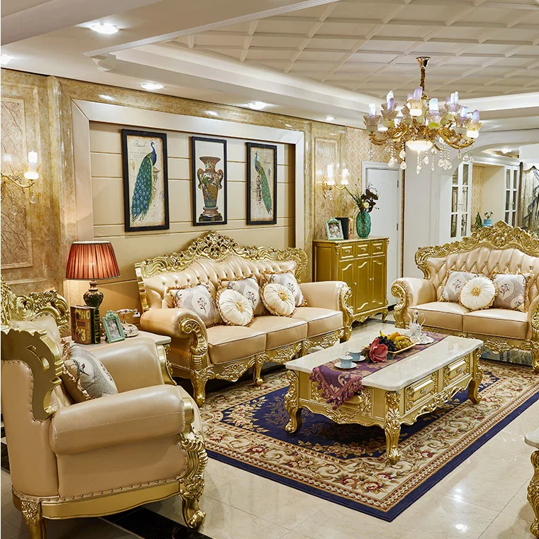 Европейский двухсторонний кожаный диван из массива дерева для гостиной