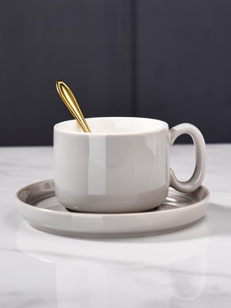 Европейский небольшой роскошный набор кофейных чашек с подносом, офисная кофейная чашка, блюдце с золотым ободком, чашка послеобеденного чая, блюдце, ложка, домашняя посуда 201-300ml серый